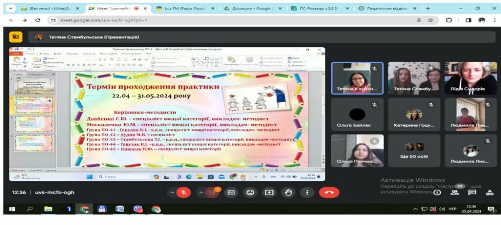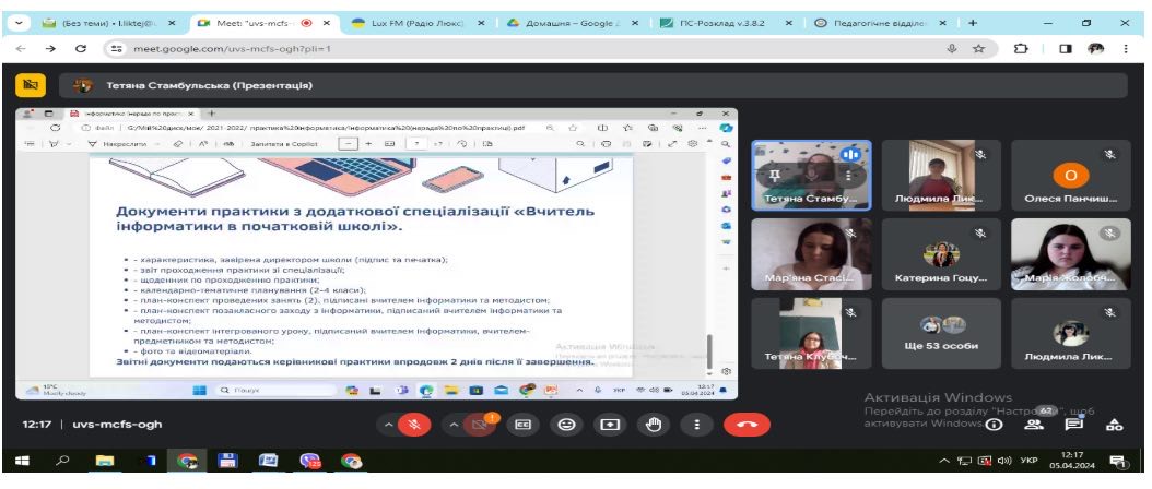 Відбулася настановча нарада із практик «З додаткової кваліфікації» та «Безперервна» для здобувачів фахової передвищої освіти спеціальності 013 Початкова освіта.