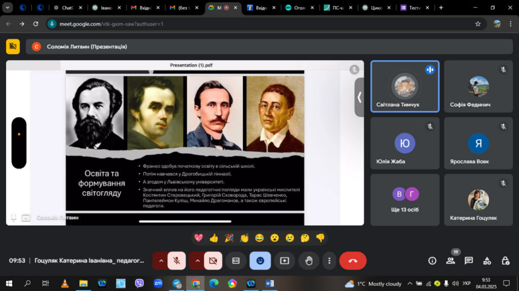 ✨ Сьогодні на занятті педагогіки група ПОк-22 занурилася у світ видатних педагогів і їхній вплив на сучасну науку. Обговорювали постаті Івана Франка, Тараса Шевченка, Пантелеймона Куліша, Григорія Сковороди які заклали основи сучасної педагогіки. Їхній внесок залишається джерелом натхнення для нас. Читати далі