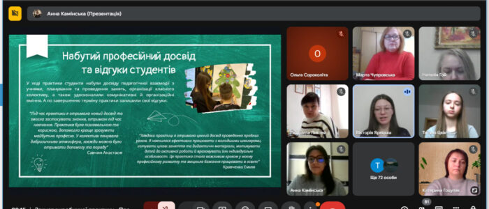 У закладі освіти відбувся захист виробничої (педагогічної) практики здобувачів освіти 4 курсу спеціальності “Початкова освіта”, який проходив у дистанційному форматі з використанням платформи Google Meet.