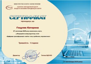 Гоцуляк Катерина Іванівна_курси підвищення кваліфікації_2023 р.